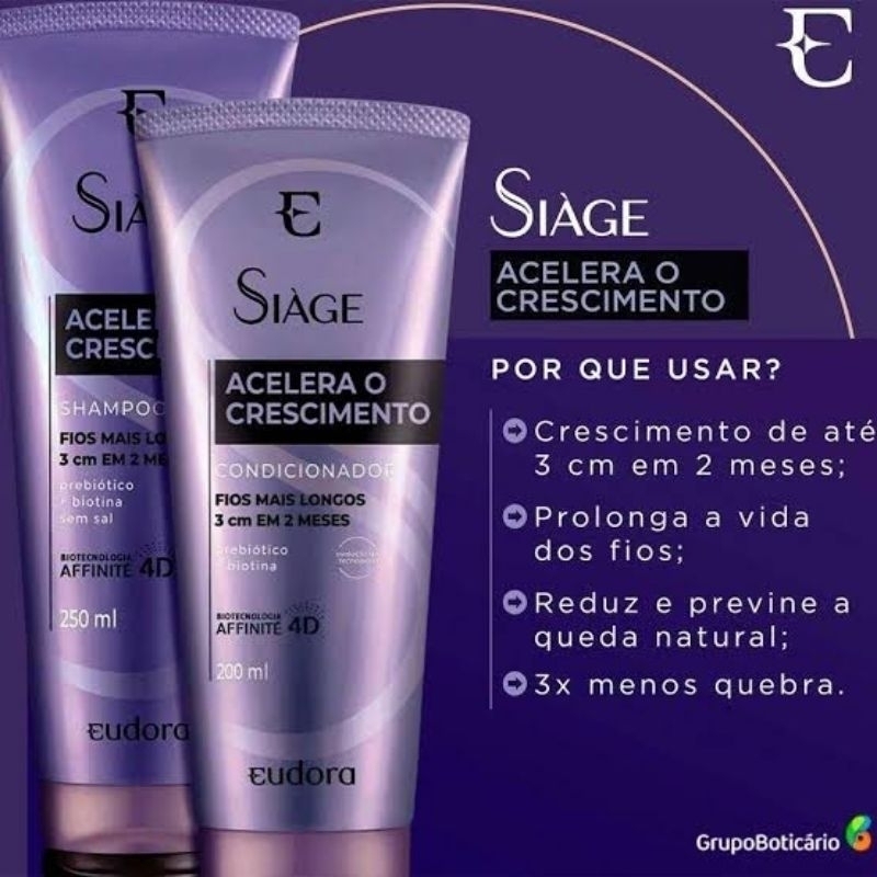 Combo Siàge Acelera o Crescimento Shampoo 250ml Condicionador 200ml Eudora