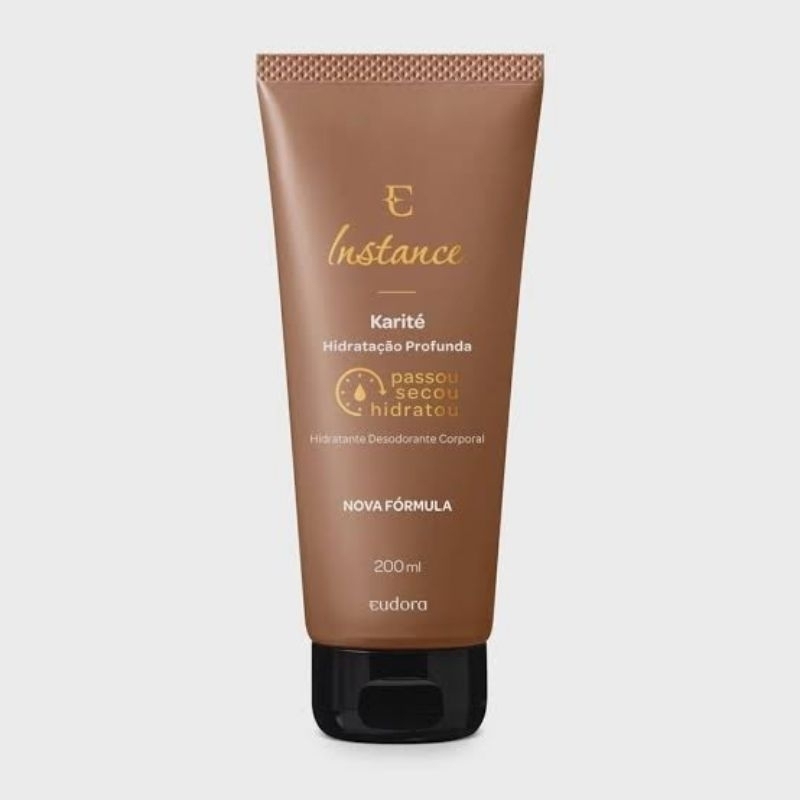 Com Manteiga de Karité em sua fórmula, o Hidratante Desodorante Corporal Instance Karité promove uma hidratação reparadora com fragrância marcante, deixando a pele macia e perfumada. Eudora sabe que você adora se cuidar e que seu tempo precioso tem que valer cada minuto. Por isso, selecionamos ingredientes naturais intensamente nutritivos que agem em instantes, deixando sua pele perfumada do jeito que você gosta. Benefícios: Fórmula e fragrância extremamente cremosas e envolventes; Hidratação instantânea e profunda; Feito com ingredientes selecionados criteriosamente. E o melhor? Passou, Secou, Hidratou!