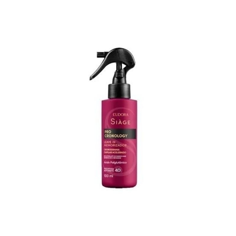 Leave in Memorizador Siàge Pro Cronology 100ml Siàge Pro Cronology traz o cronograma capilar acelerado capaz de recuperar todos os tipos de danos em 2 semanas. A linha pausa a degradação e o desgaste do fio e recupera os danos mais severos em todos os tipos de cabelo. Toda a linha possui fórmulas enriquecidas com Ácido Poliglutâmico: ativo biotecnológico que auxilia no equilíbrio da umidade natural interna e externa dos fios, garantindo maciez, brilho e alta hidratação dos cabelos. O Leave in Memorizador Siàge Pro Cronology fixa o tratamento no fio mesmo após o enxágue e mantém seus cabelos tratados por mais tempo, agindo também como protetor térmico capilar. Confira abaixo todos os benefícios do finalizador: -Garante redução de pontas duplas e triplas; -Maciez e brilho na 1ª aplicação; -Proteção térmica de até 230°; -Blinda o cabelo, protegendo do calor, dos raios solares e das agressões diárias; -Prolonga o efeito da reconstrução do fio mesmo depois do término do cronograma capilar.