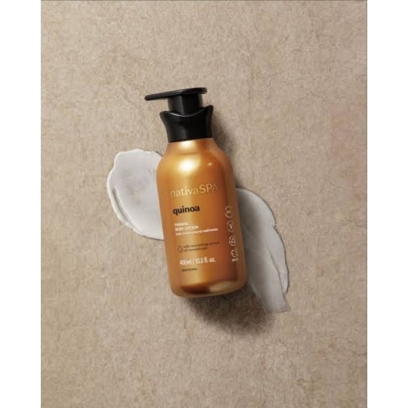 Loção Firmadora Desodorante Corporal Nativa SPA Quinoa 400ml A Loção Firmadora Desodorante Corporal Nativa SPA Quinoa te convida a sentir a vida, de pele e alma. A textura e a fragrância entregam uma pele cheia de vida para uma rotina incrível de cuidados. Ideal para o momento de autocuidado e para momentos especiais, hidrata, desodoriza e nutre profundamente. A fórmula da Loção Firmadora contém 10x mais Óleo Puro de Quinoa**, entregando uma pele mais firme e nutrida em apenas 14 dias de uso contínuo. Confira mais benefícios: -Hidratação o dia todo; -Pele mais firme; -Fragrância marcante e confortável; -Textura que não deixa a pele oleosa ou pegajosa; - Rápida absorção. Com 93%de ingredientes naturais, sua fórmula vegana é vegana e Cruelty Free. Sua embalagem é feita de material reciclado, garantindo mais sustentabilidade e cuidado ao meio ambiente.