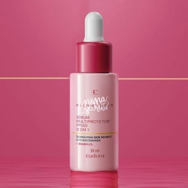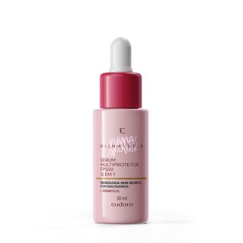 Sérum Facial Multiprotetor FPS 50 12 em 1 Niina Secrets Skin 30ml Quem não abre mão do skincare precisa conhecer o Sérum Facial Multiprotetor FPS 50 12 em 1 Niina Secrets Skin! Ele é perfeito para tratar e fazer a preparação da pele que vai receber a maquiagem e ainda protege o rosto contra os efeitos nocivos do sol. O sérum facial traz 12 benefícios em 1 produto e combina a exclusiva Tecnologia Skin Secrets com o ativo Bisabolol e FPS 5 que proporciona benefícios para a sua pele como: 1- Proteção UVB; 2- FPUVA 18 | UVA+++; 3- Textura ultra fluída e com toque seco; 4- Controla a oleosidade ao longo do dia; 5- Antioxidante: combate os radicais livres e previne o envelhecimento precoce; 6- Uniformiza a textura da pele; 7- Deixa a pele macia e suave; 8- Protege contra a poluição; 9- Minimiza os danos causados pelo infravermelho; 10- Forma uma barreira que hidrata profundamente; 11- Não deixa resíduos e nem muda a coloração da pele; 12- Se adapta perfeitamente a todos os tons e tipos de pele.